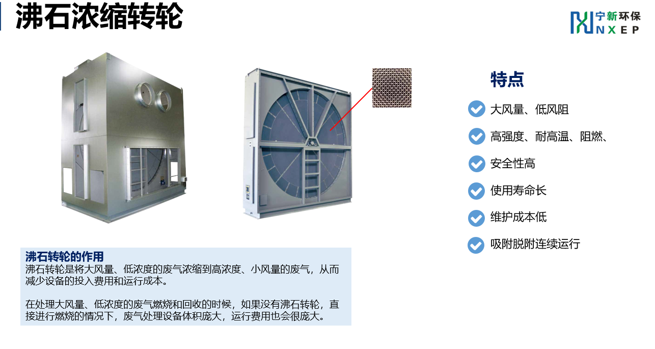 沸石转轮吸附VOCs所产生的压降极低,可大大减少电力能耗;